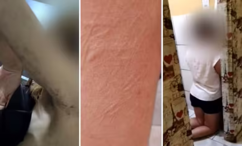 Imagens encontradas pela polícia no celular da mãe da jovem, mostram as marcas da violência, como vergões e cicatrizes espalhados pelo corpo da menina (veja abaixo).