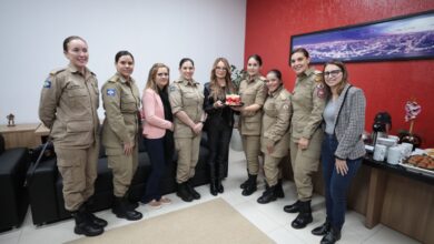 Primeira-dama recebe homenagens em festa surpresa na visita no quartel Comando do Corpo de Bombeiros de MT