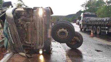 Kethlyn Moraes | RDNews O passageiro de um caminhão morreu esmagado após o veículo, que estava carregado de pedra, tombar…