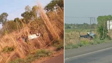 Engavetamento entre 3 veículos na BR-070 deixa duas pessoas feridas