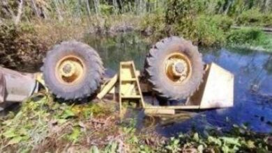 Pá carregadeira cai em represa, operador fica preso e morre Nova Xavantina