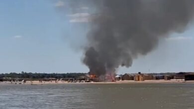 Rancho de palha pega fogo em praia do Rio Araguaia, e turistas saem correndo