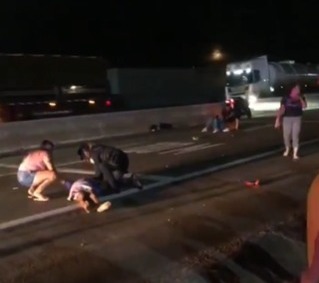O Corpo de Bombeiros foi acionado, e no local encontrou uma das vítimas caída ao chão, sem capacete, com escoriações e se queixando de dores na região do quadril.