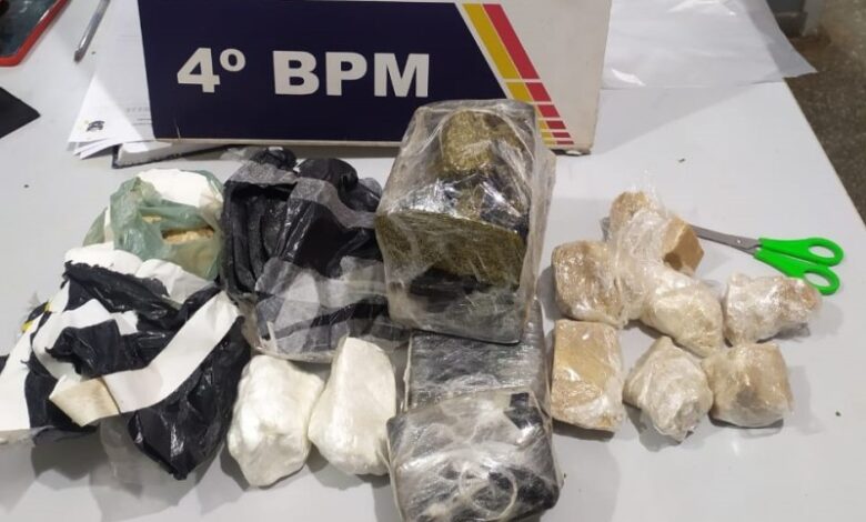 Com eles, foram apreendidos quatro porções grandes de cocaína, sete pacotes de pasta base e maconha no Bairro Jardim Esmeralda.