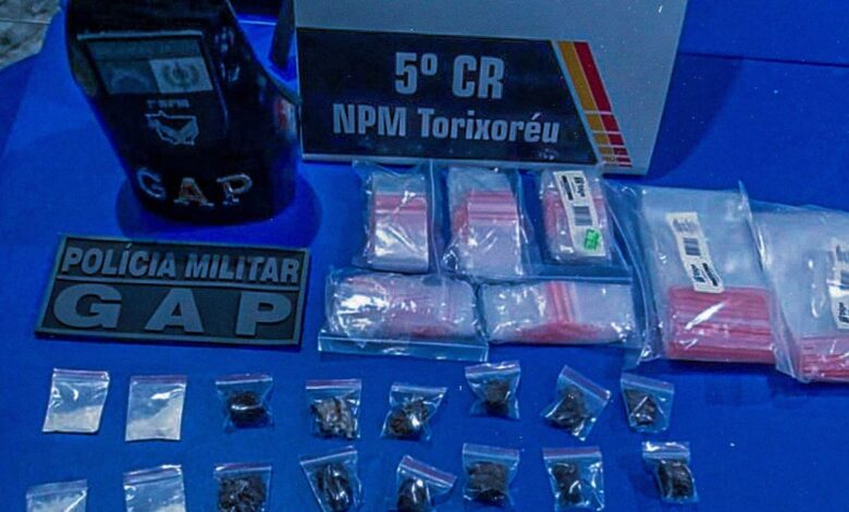 Um jovem de 19 anos, com diversas passagens criminais, foi preso em flagrante na tarde de segunda-feira (20) por tráfico ilícito de drogas, durante uma ação conjunta do Núcleo de Polícia Militar de Torixoréu e Grupo de Apoio (GAP) do 2° Batalhão da Polícia Militar..