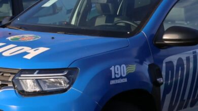 Ao chegar no local apontado, a guarnição chamou o suspeito pelo nome, o qual apareceu na sacada. Os policiais subiram até a porta do apartamento e escutaram o homem mandando a vítima se trancar no banheiro.