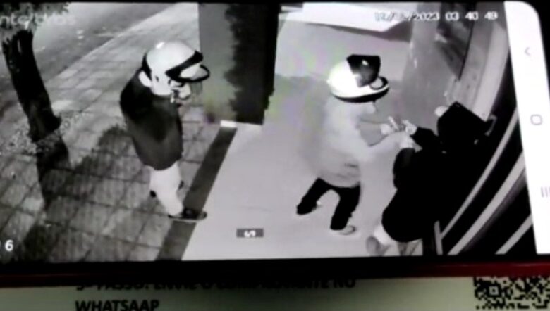 Câmeras de segurança registraram o momento que três homens usando capuzes e capacetes arrombaram e furtaram um cartório na cidade de Aragarças durante a madrugada de domingo (19). Por meio das imagens, a Polícia Militar identificou os envolvidos, prendeu dois e recuperou objetos subtraídos.
