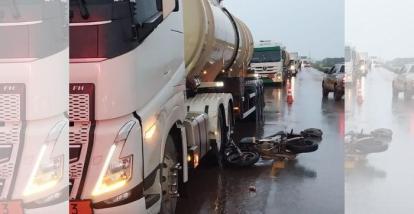 Um homem, ainda não identificado, morreu em um acidente entre a moto que pilotava e uma carreta que transportava etanol, no km 682 da BR-163, em Lucas do Rio Verde (MT), no final da tarde desta terça-feira (9).