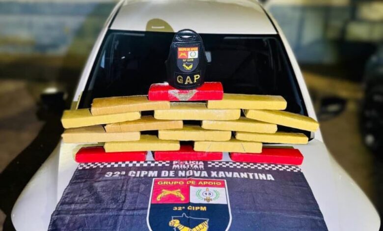 Policiais militares do Grupo de Apoio (GAP) da 32ª Companhia Independente, em ação conjunta com a Força Tática do 5º Comando Regional, apreenderam, na noite de sexta-feira (17), dezoito tabletes de maconha e prenderam um casal de faccionados após perseguição policial, no município de Nova Xavantina (a 559 km de Cuiabá).
