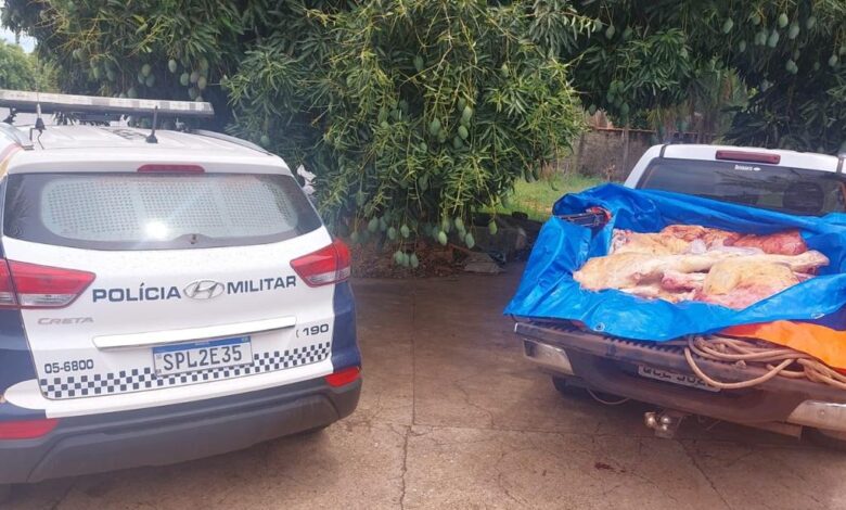 Polícia Militar apreende carne clandestina durante operação na MT-100, em Torixoréu