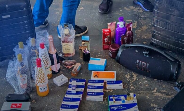 Entre os materiais apreendidos estavam caixas de medicamentos de diferentes dosagens, ampolas de anabolizantes, frascos de perfumes, aparelhos eletrônicos, bebidas alcoólicas e outros produtos de procedência não comprovada.