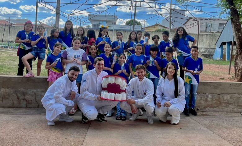 Acadêmicos do 4º semestre do curso de Odontologia do Centro Universitário do Vale do Araguaia (Univar), realizaram uma ação educativa do Projeto de Extensão Interdisciplinar “Saúde Bucal em Ação” com alunos do 4º ano do ensino fundamental I da Escola Estadual José Ângelo dos Santos, em parceria com a escola CMEB Elizabeth Sanchez Lacerda.